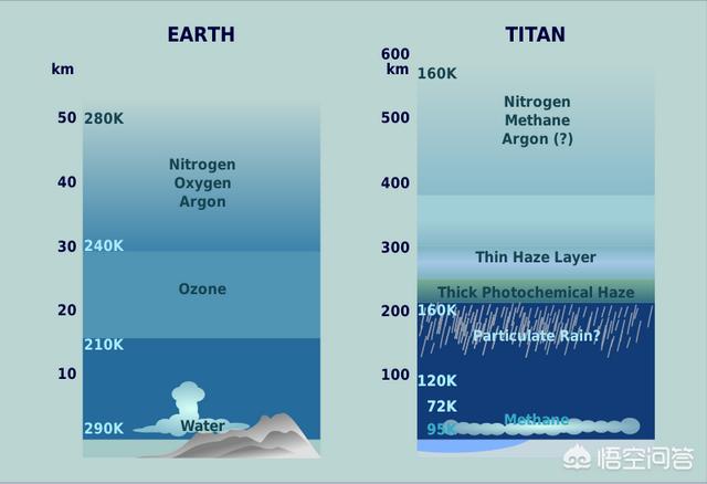 相比于火星,土卫六有着更接近于地球的表面环境,先说它比地球还浓厚的大气层,其大气压是地球的1.5倍,可以说和地球非常相像,相比之下火星的大气压却只有地球的0.8%左右,而且土卫六上95%都是氮气,而地球大气层中的氮气含量占了78%,也和地球非常相像,而火星上的气体98%以上都是二氧化碳,可以说和地球差别太大了。因此有科学家说,土卫六实际上就像是“原始地球”,表面环境比火星与地球更为相似。