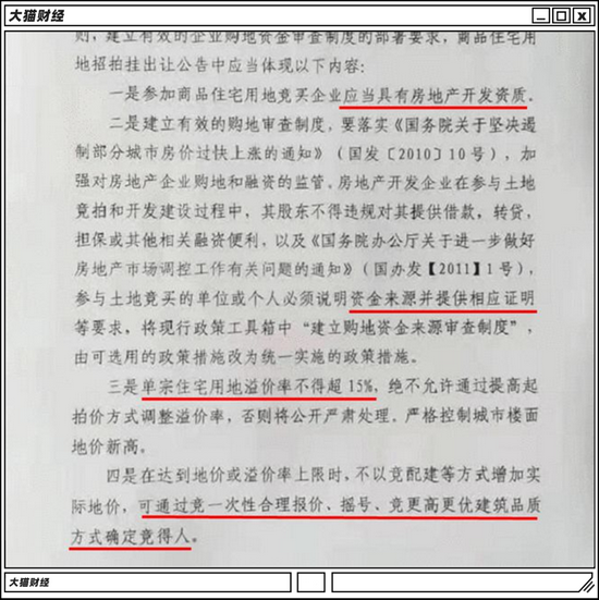 前两天,流传出一份文件来,里面注明了出让公告里面有几个基本要求: