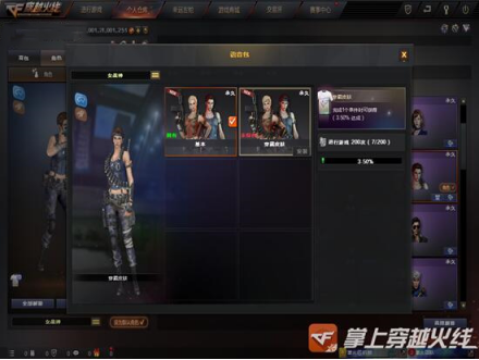 另外女战神还是游戏中首个拥有皮肤系统的功能型角色,在角色属性设置按钮旁边多了一个衣服按钮,点开之后会弹出女战神的皮肤系统。如上图所示,目前只有一个皮肤,点击穿戴之后,女战神头上多了个发带,并且身上挂满了子弹匣,明显已经进入作战状态,游戏200次便可以获得女战神的这款新皮肤。