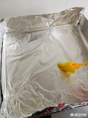 4、烤箱预热,烤盘上铺一层锡纸,刷上油。