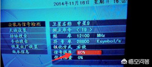 5、信号强度显示条会逐步显示,当然只有60%是不够的,而且没有信号质量。继续调整。