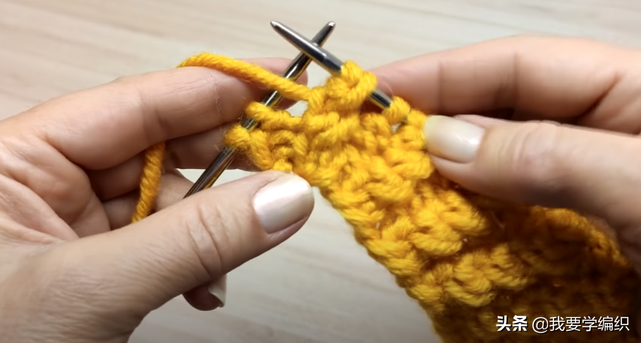 第4行:挑1,重复(1反,下1正),最后1反(下1正:即穿入下方1行的线圈织正针);后面重复第4行的织法,一直织到约7.5cm的高度;接着我们要开始减针。第1行:挑1,1反,正右上3并1,重复(2次<1反,下1正>,1反,正右上3并1),最后1反,下1正,1反;第6-8行:挑1,重复(1反,下1正),最后1反;(此时帽身部分高度约为13.5厘米)。