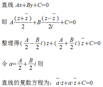 直线有多种定义方式,最方便用复数来描述的形式,莫过于中垂线形式:到两定点距离相等的点的轨迹,是直线。