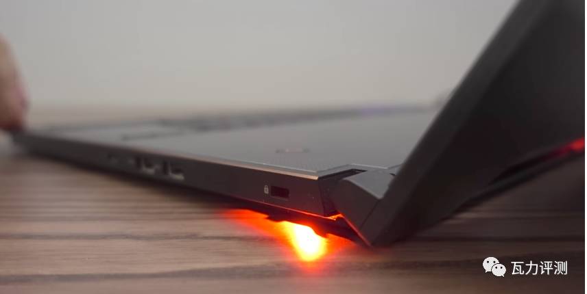 它还有一个很厉害的地方,就是在你打开屏幕之后,在机身后面会稍微自动抬起来一点,给下方留出一点点缝隙用来散热,这是个很酷也很实用的设计。