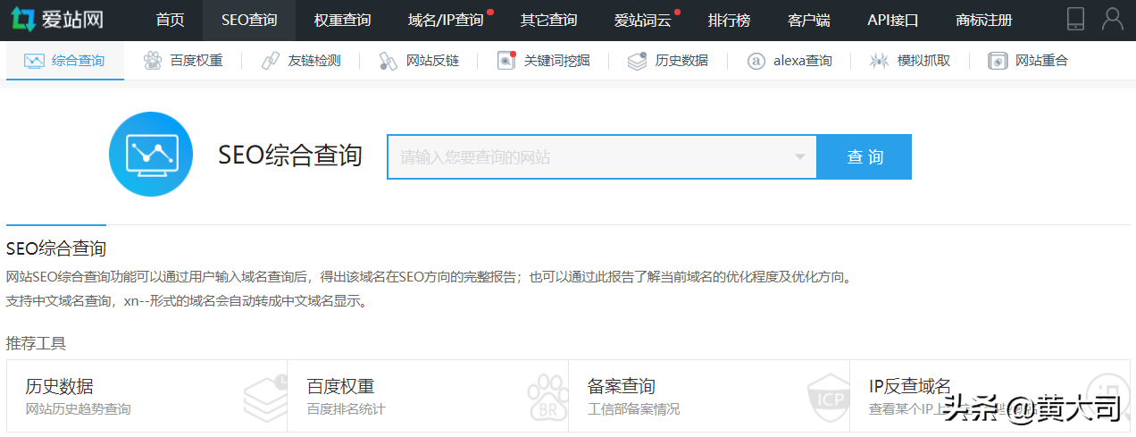 大家好,我是黄大司,今天我们讲一下,SEO综合查询工具。