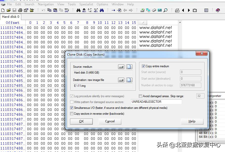 北亚数据恢复中心的硬件工程师先对27块硬盘做了硬件检测,发现2块硬盘出现坏道、SMART的错误冗余级别已经超过阀值,对25块正常的硬盘进行全盘镜像,对2块有坏道的硬盘用硬件工具进行了恢复并生成镜像文件。