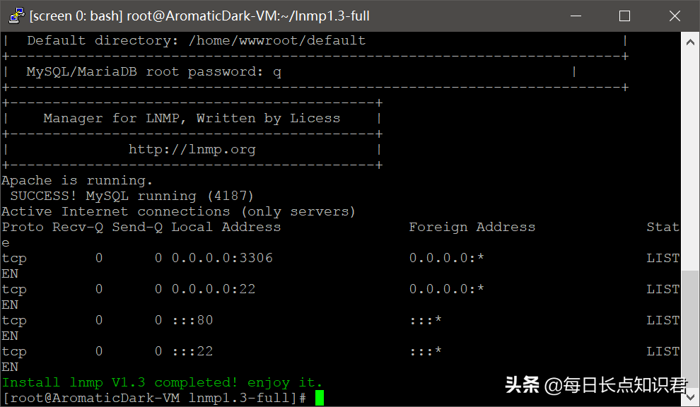 因为安装LAMP时间较长,所以用screen命令操作不会中断。